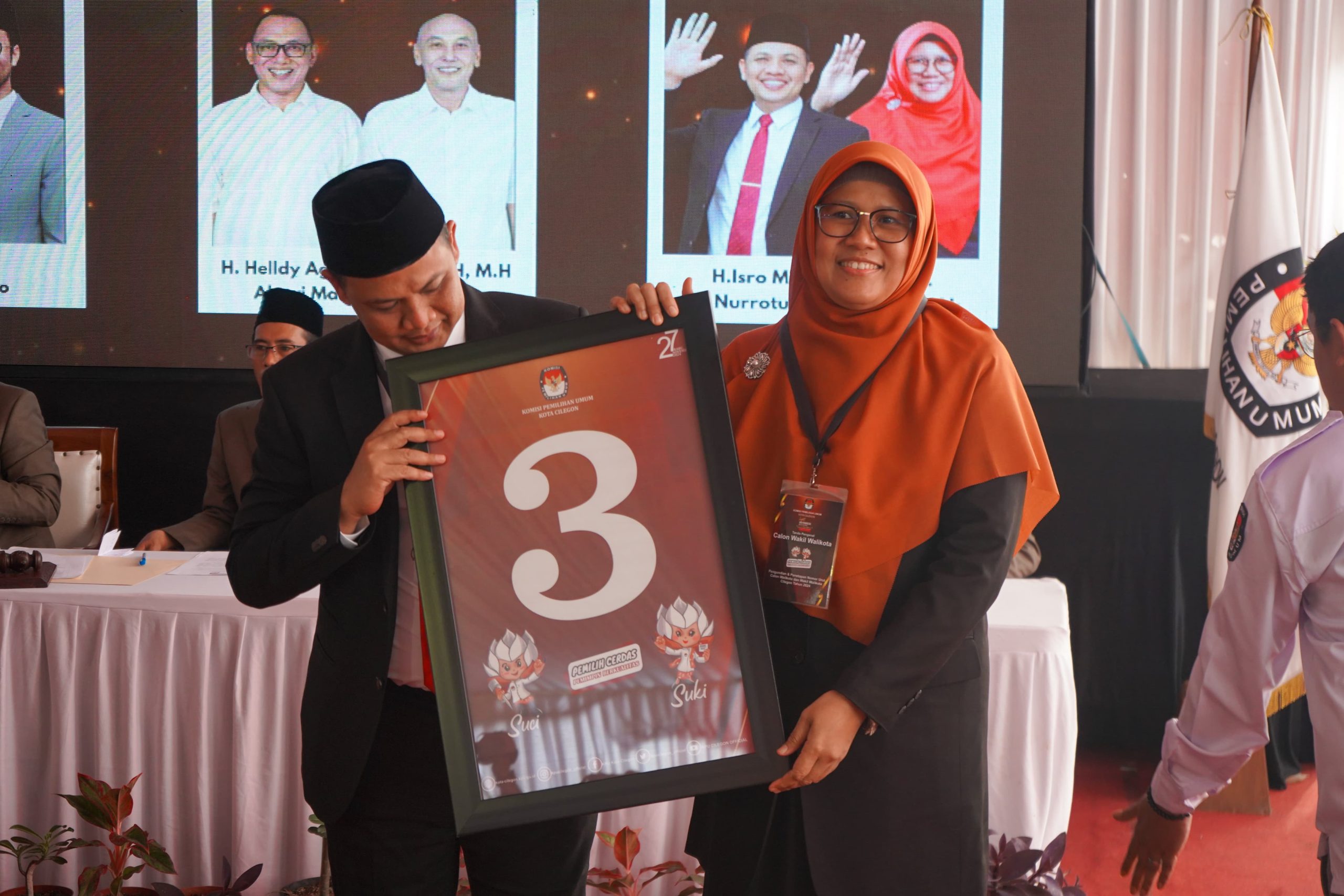 HARIANBANTEN.CO.ID – Pasangan Calon Wali Kota Cilegon Isro Miraj dan Calon Wakil Wali Kota Cilegon Nurrotul Uyun secara resmi mendapatkan nomor urut 3 dalam kontestasi Pilkada Kota Cilegon.