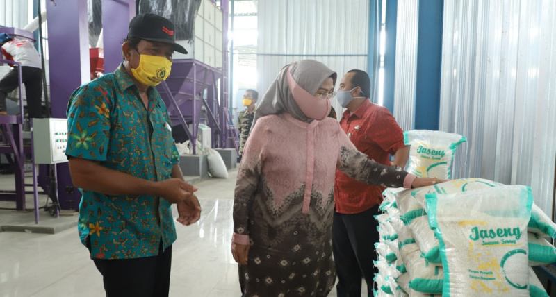 SERANG – Bupati Serang Ratu Tatu Chasanah meninjau produksi beras yang akan digunakan untuk